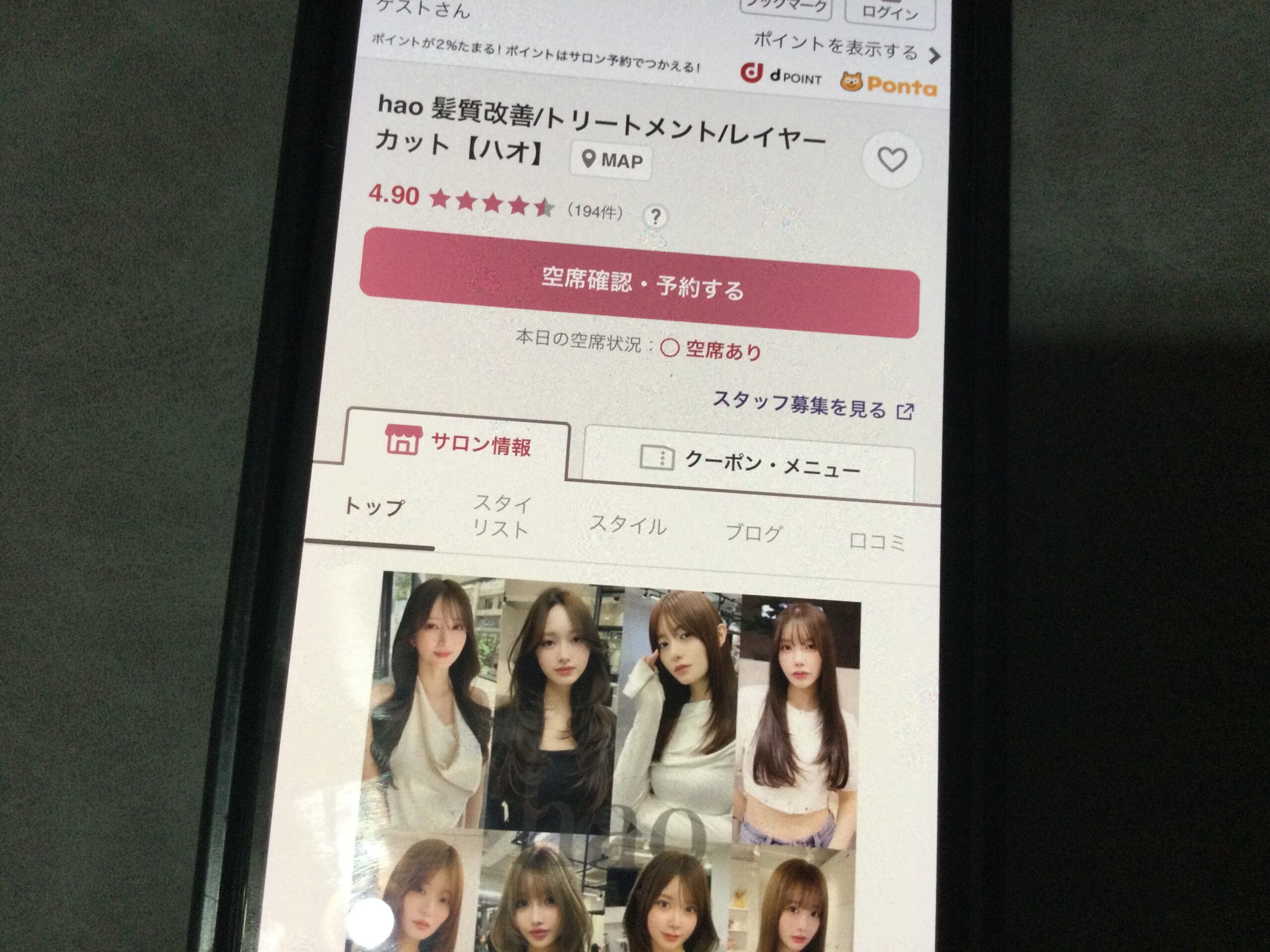 | 料金 | カット+髪質改善ミネコラトリートメント(髪質改善/髪質改善ミネコラトリートメント) ¥23,650 カット+髪質改善カラー(髪質改善カラー.韓国ヘア.ショート.ボブ.前髪.メンズカット◎) ¥20,350~ |