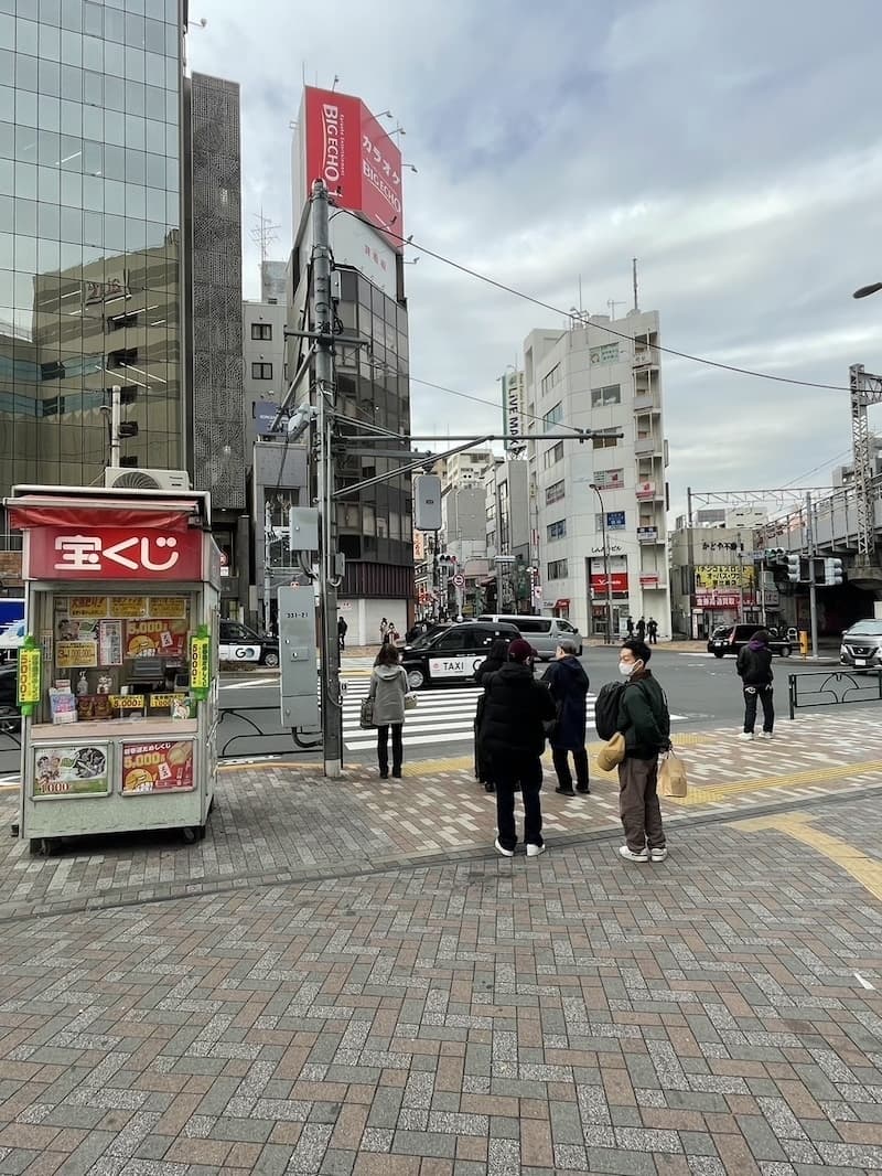 2.宝くじ売り場(左)、交番(右)の横断歩道を真っ直ぐに進んでいきます。